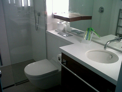 We have fitted 180 vanity tops like this one above to the Sandman Hotel in Newcastle. The material is Blanco Zeus Silestone.